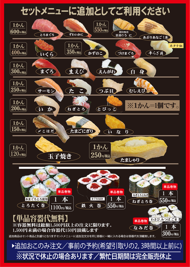 おすすめ日替わりネタもございます。お気軽に問い合わせ下さい。